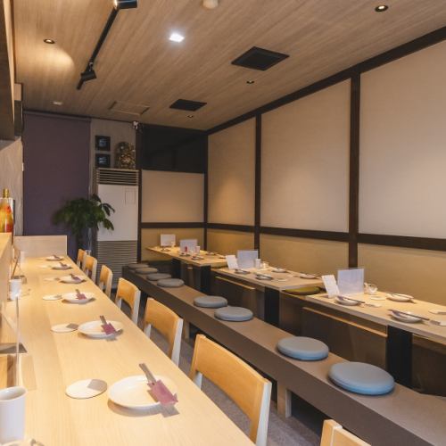 【清潔感あふれる空間】デートやご友人とのカジュアルなお食事にぴったりの掘りごたつ席◎接待や記念日などにもご利用いただけます。